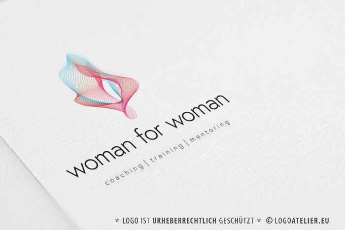 Weibliches Logo Frauen Woman For Woman Kurven Coaching Mentoring Club Pink Rosa Blau Linien Formen Geschlecht Medizin Arzt Farbenfroh Homosexuell Leicht Linien
