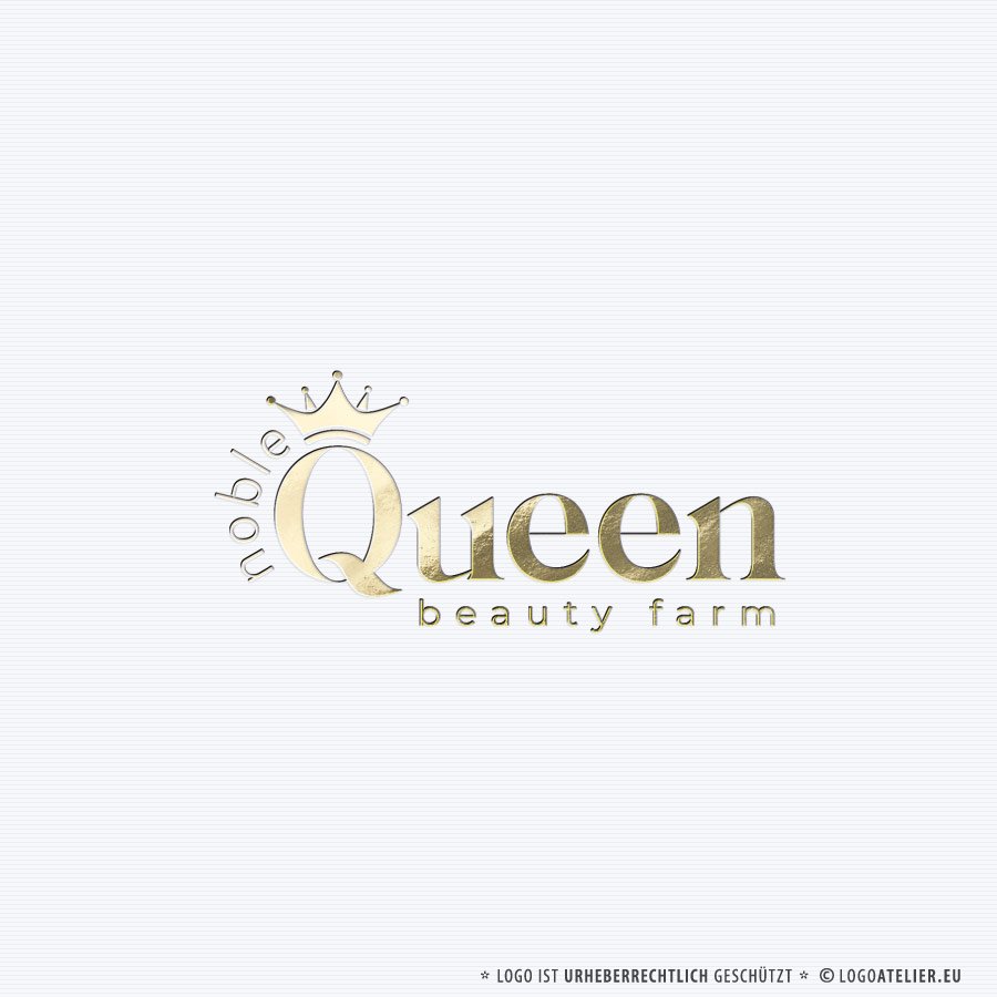Das Logo präsentiert sich luxuriös und stilvoll. Die goldene Schrift und die Krone über dem Q symbolisieren Exklusivität, Eleganz und einen royalen Anspruch an Schönheit und Pflege. Der moderne, edle Farbkontrast verstärkt den Premium-Charakter des Studios.