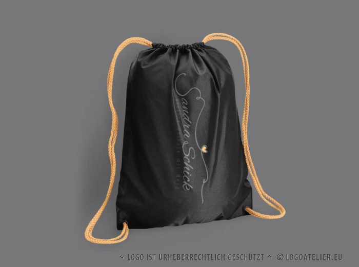Das Logo ist der Buchstabe S mit Herz (und auf Wunsch mit Nähnadel). Der Firmenname und der Slogan werden nach Ihren Wünschen angepasst.
