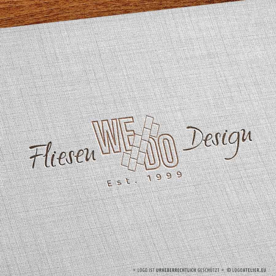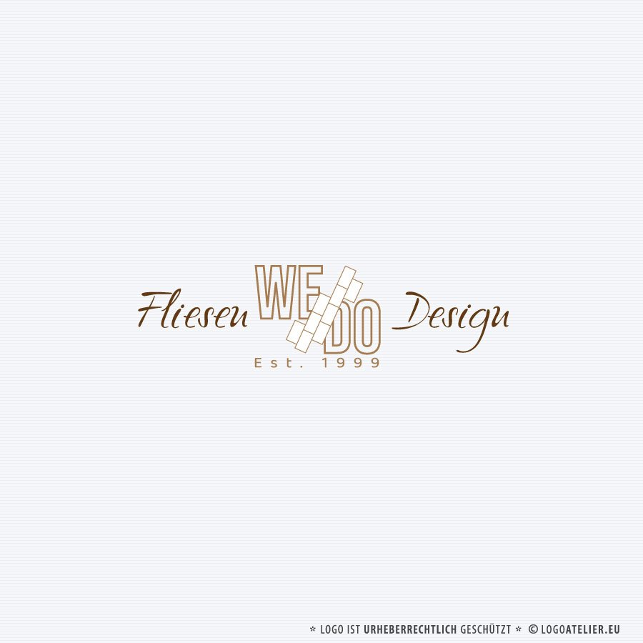Das Logo „WE DO Fliesen Design“ vermittelt einen klaren, professionellen und zugleich kreativen Charakter. Der Schriftzug kombiniert eine elegante, leicht verschnörkelte Schrift für „Fliesen“ und „Design“ mit einer modernen, ausdrucksstarken Großschrift für „WE DO“. Das zentrale Element ist die stilisierte Anordnung von Fliesen, die in der Mitte des Logos platziert sind, was den Kerngedanken des Unternehmens – Fliesenverlegung und Design – unmittelbar visuell kommuniziert.