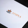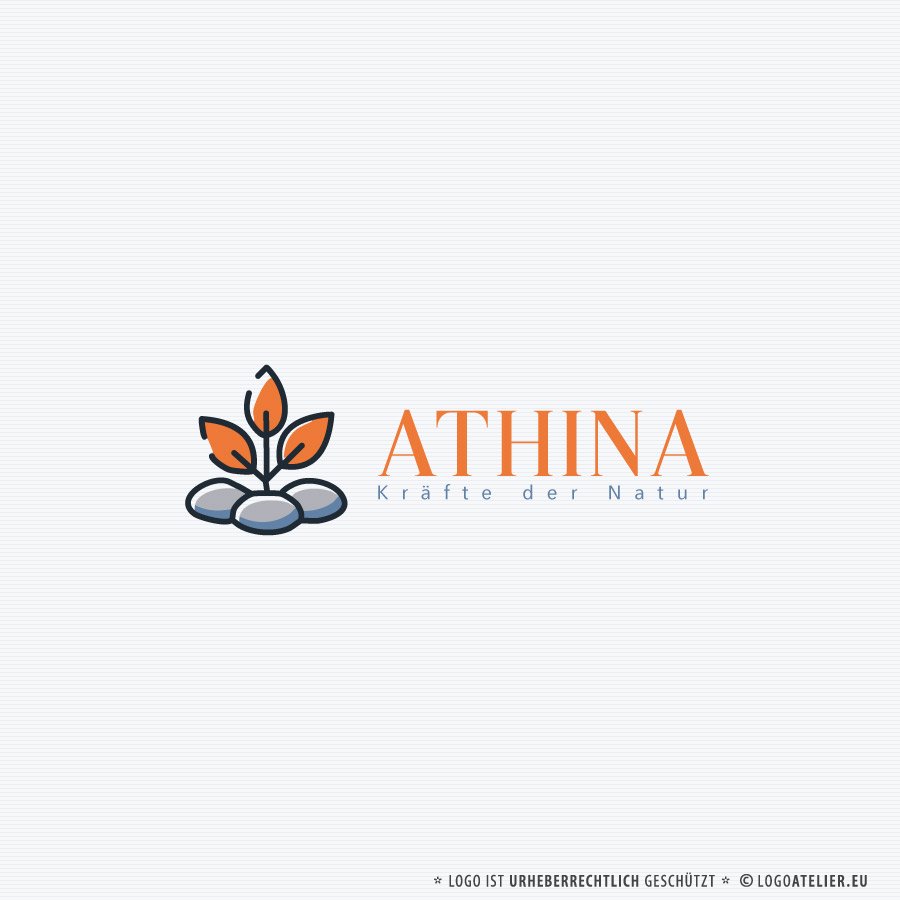 Das Logo stellt ein stilisiertes Blattsymbol in warmem Orange über grauen Steinen dar – harmonisch, klar und naturverbunden. Der Schriftzug in einer eleganten Serifenschrift vermittelt Ruhe und Balance.