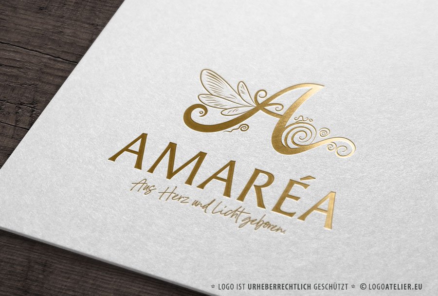 Feen Logo Buchstabe A Flügel Schmetterling Zauberhaft Insekten Fliegen Handgezeichnet Lichtvoll Herzlich Freude Spielen Spirituelles Logo kaufen Logoshop Logoatelier