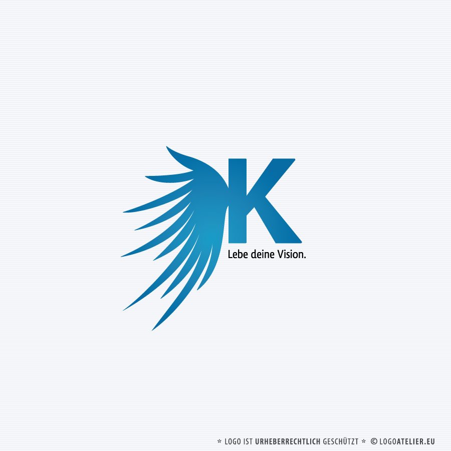 Logo Buchstabe K Flügel Engel Bewusstsein Friedlich Glück Hilfe Fliegen Vogel Leicht
