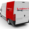 Logo ist minimalistisch mit einer kleinen Spur von Dynamik um mehr Aufmerksamkeit vom Kunden zu erzeugen. Rot und Dunkelgrau passen perfekt zum Thema Installateur.
