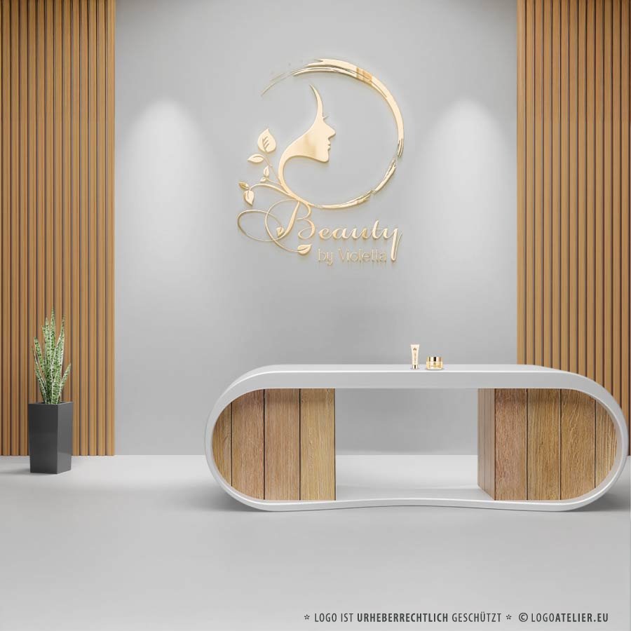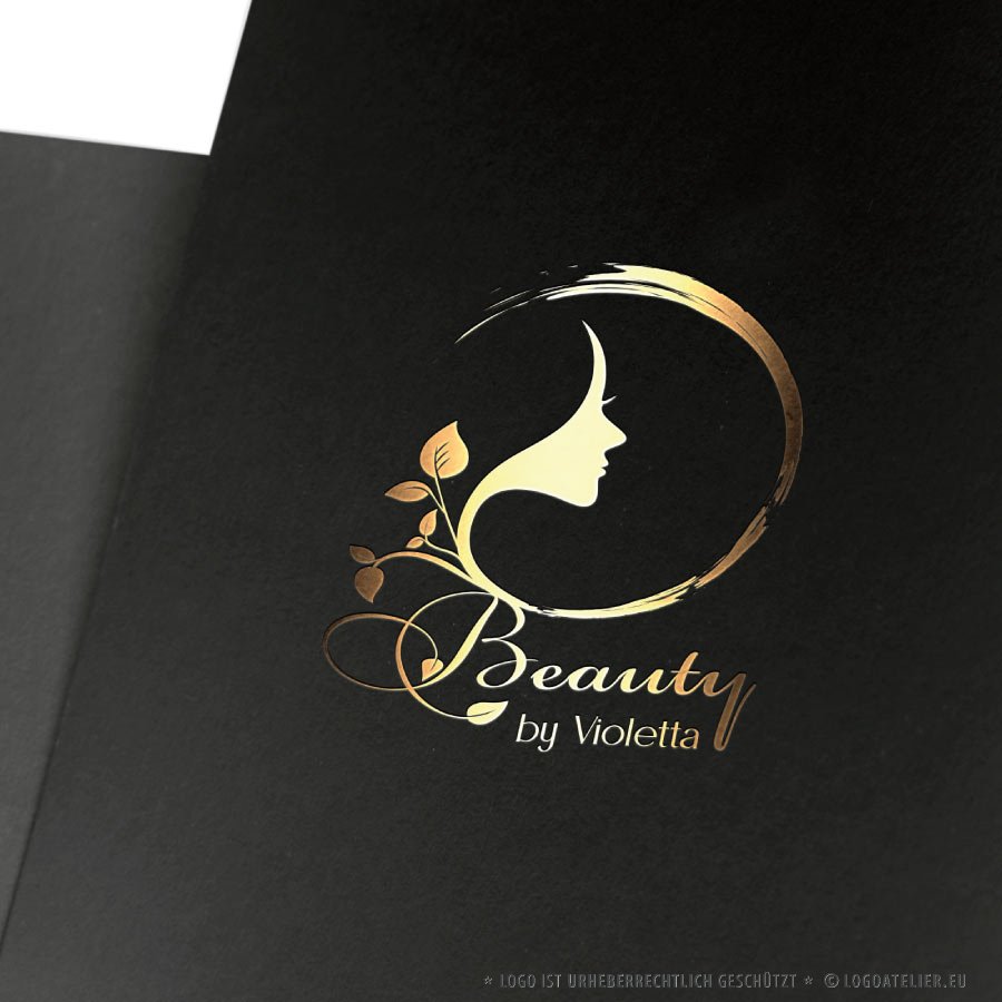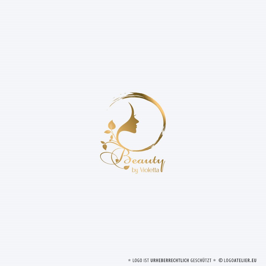Das Logo „Beauty by Violetta“ vereint Eleganz, Weiblichkeit und Natürlichkeit in einer feinen visuellen Komposition. Der goldfarbene Entwurf zeigt das stilisierte Profil eines Frauenkopfes, das mit floralen Elementen in einen offenen, dynamischen Kreis eingebettet ist. Dieser Kreis wirkt wie ein Pinselstrich – er steht für kreative Bewegung, Offenheit und das Streben nach Vollkommenheit. Die Verknüpfung von Gesicht und Blattmotiven unterstreicht die enge Verbindung zu natürlicher Schönheit, Pflege und organischer Ästhetik.